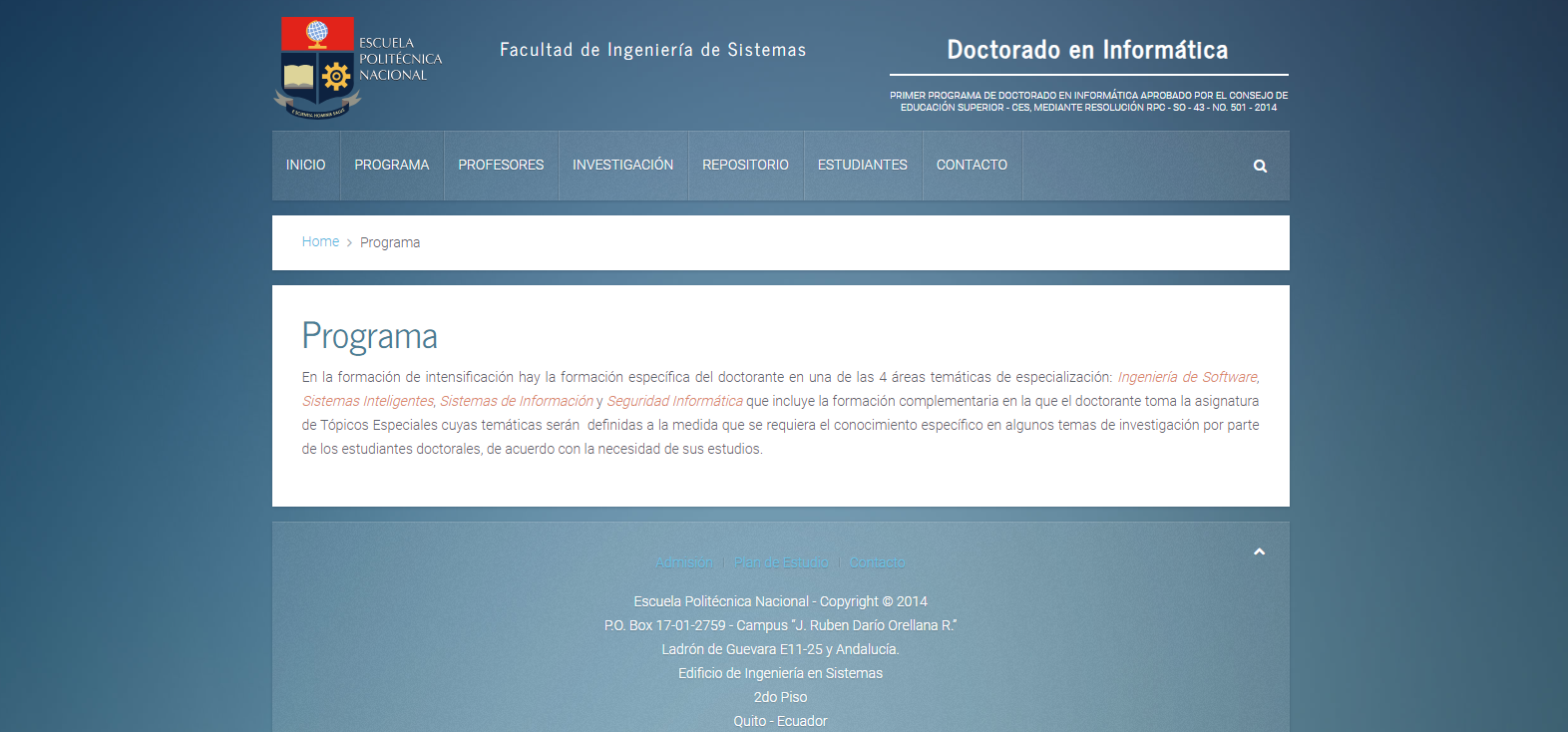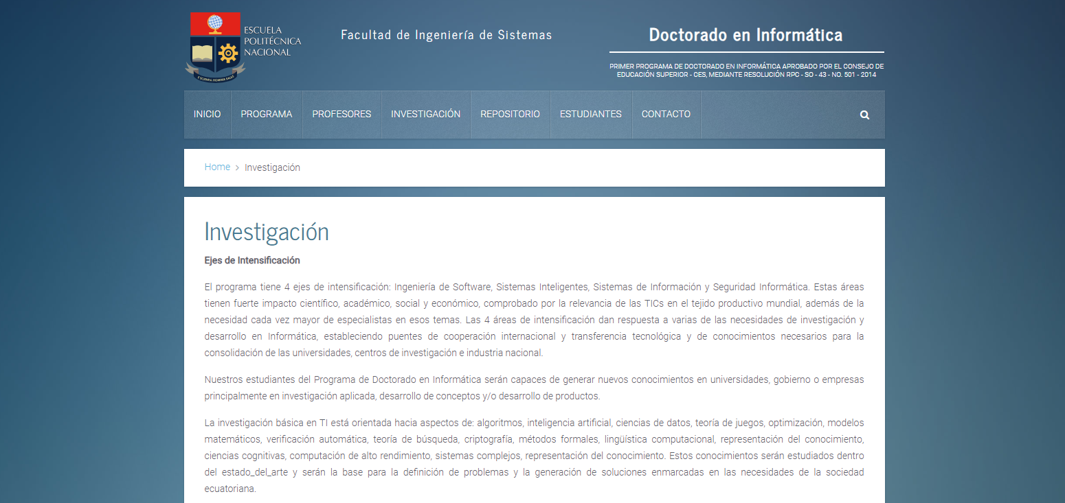 PRIMER PROGRAMA DE DOCTORADO EN INFORMÁTICA APROBADO POR EL CONSEJO DE EDUCACIÓN SUPERIOR - CES, MEDIANTE RESOLUCIÓN RPC - SO - 43 - NO. 501 - 2014