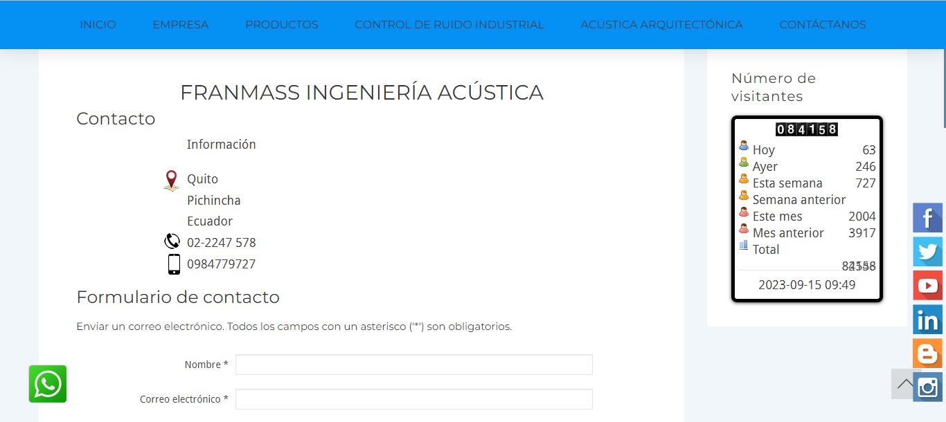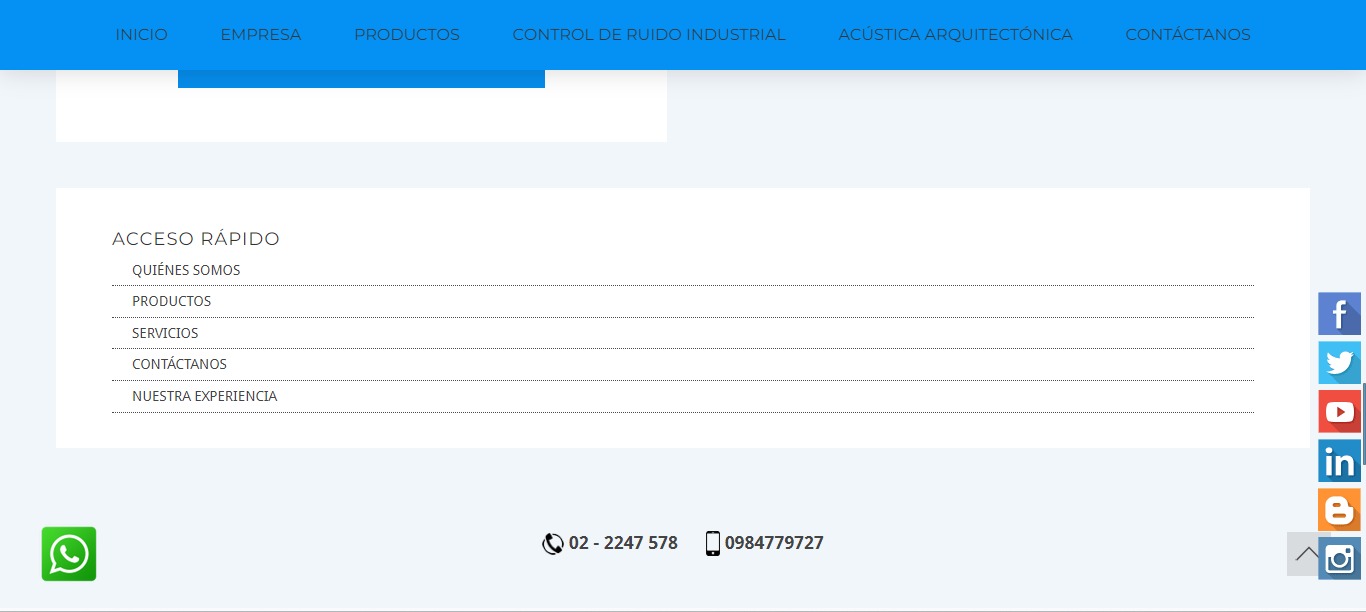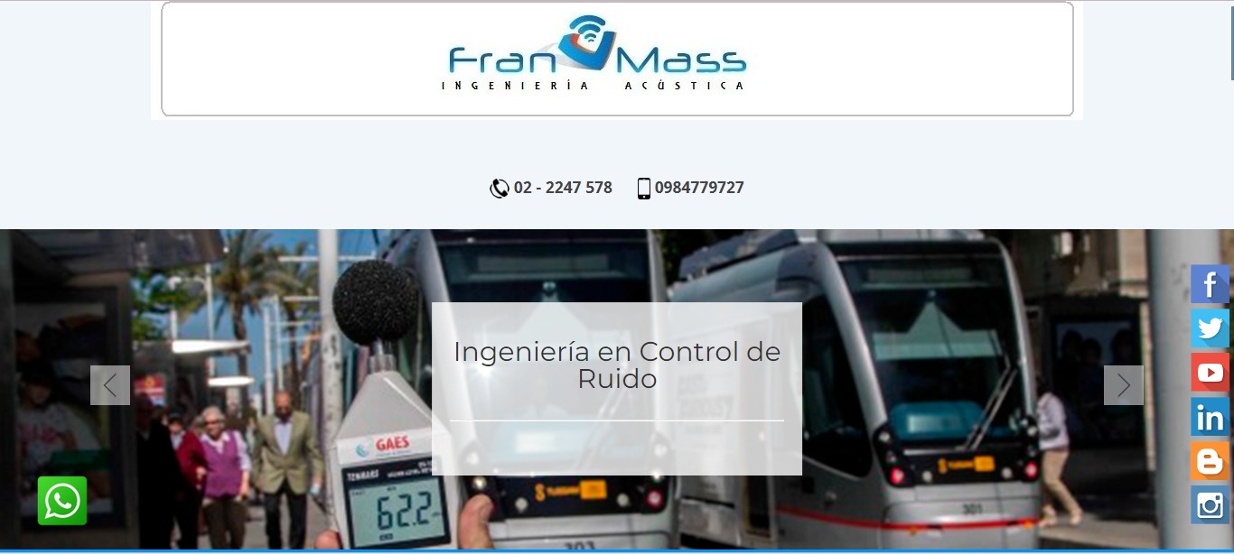 Somos una empresa líder y pionera en el Ecuador en servicios de Ingeniería Acústica. Proyectos de aislamiento y acondicionamiento acústico sonoro, Control de Ruido y Vibraciones, Aislamiento de Ruido, Acústica Arquitectónica, Acondicionamiento acústico.