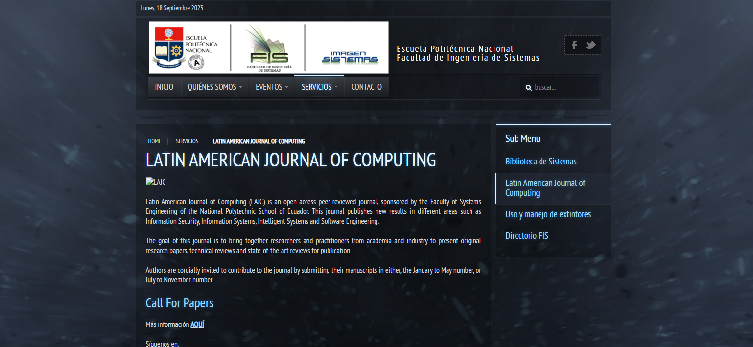 La Revista Latinoamericana de Computación (LAJC) tiene como objetivo servir como un espacio de intercambio de conocimientos para que investigadores y profesionales de la academia y la industria presenten trabajos de investigación originales, reseñas técnicas y reseñas de vanguardia para su publicación.